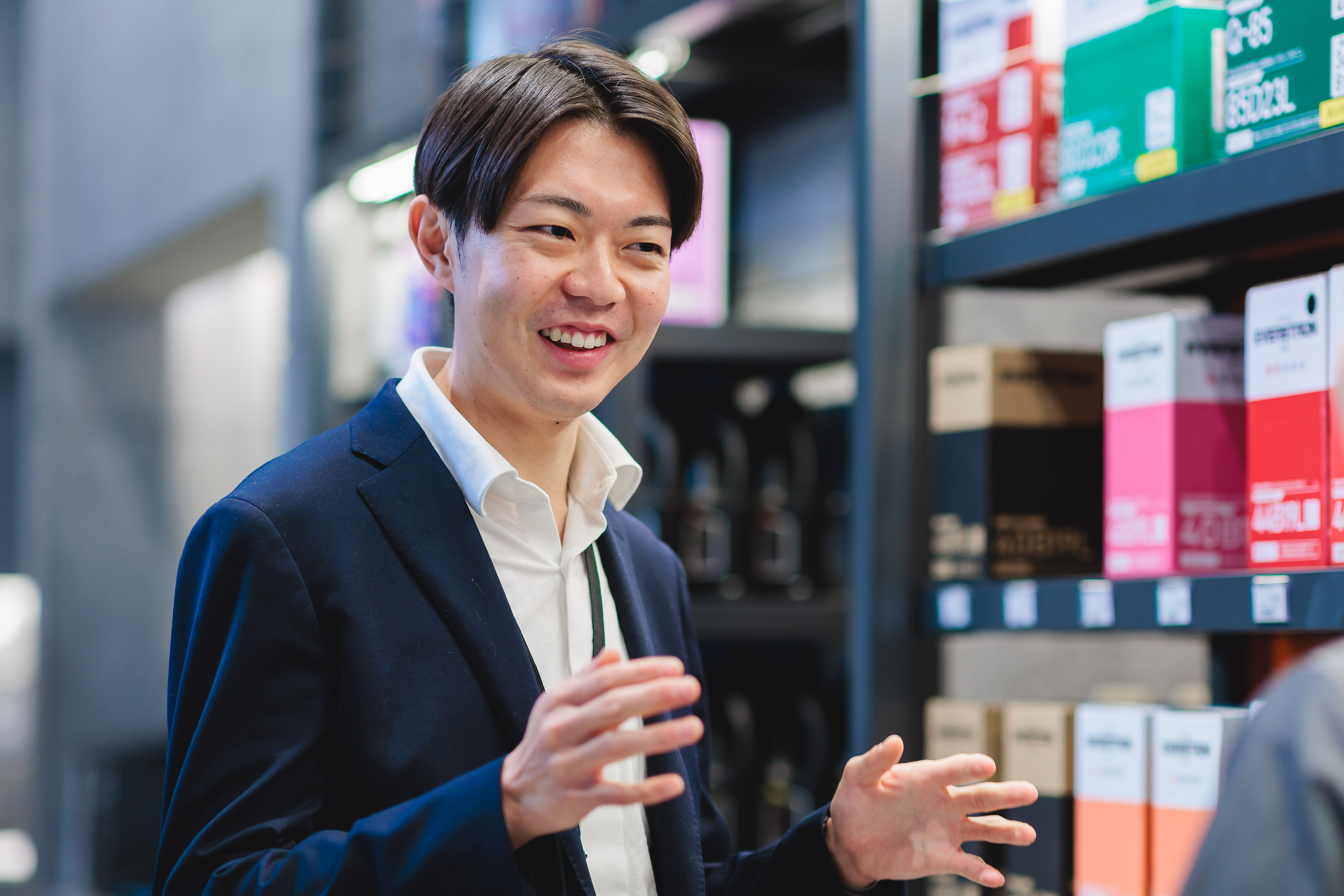大学時代にクルマを買ってからドライブの魅力を知り、「この楽しさを伝える仕事がしたい」と思っていました。その中でオートバックスセブンは、接客を通してお客様に直接アプローチできるだけでなく、ジョブローテーション制度を通して多方面からドライブの楽しさを伝えるスキルが身に付くと思い、入社を決意しました。